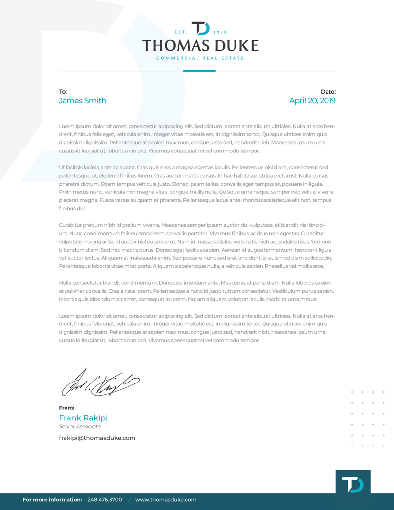 Our core challenge was to modernize the Thomas Duke brand without losing their historical identity. In order to do this, we designed a logo that harkens back to the original, with their signature teal color and classic font. The new service mark with an “est. 1976” date balances both a modern and classic look. This corporate vintage duality permeates throughout the new website, print materials, and other marketing assets.