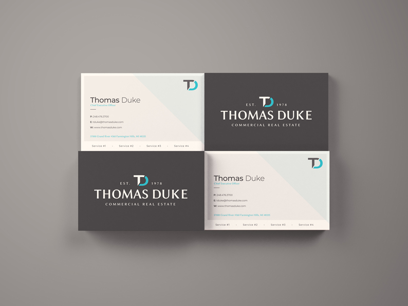 Our core challenge was to modernize the Thomas Duke brand without losing their historical identity. In order to do this, we designed a logo that harkens back to the original, with their signature teal color and classic font. The new service mark with an “est. 1976” date balances both a modern and classic look. This corporate vintage duality permeates throughout the new website, print materials, and other marketing assets.